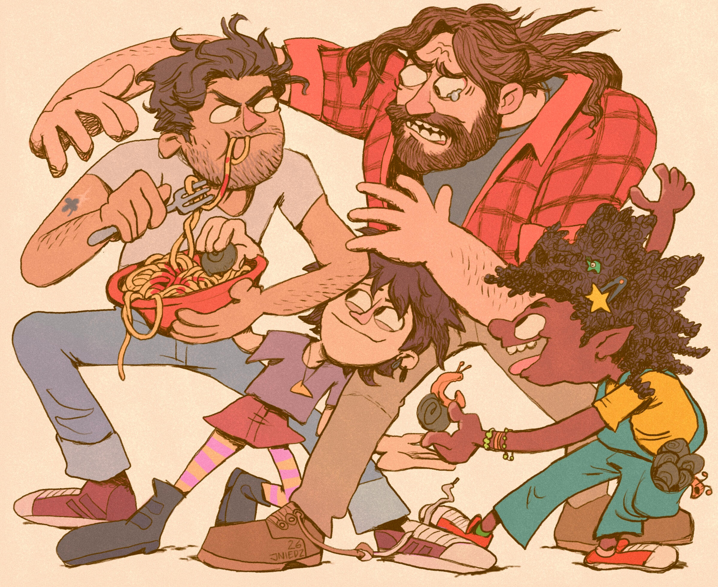 For each order please provide visual reference(s) for character(s) and a motif/clue for the illustration. This will help to set the scene and mood. A clue can be short description of the scene, a poem, song, ‘mysterious rain of bagels‘, ‘dealing with loss which crawls up like a slow, hungry animal’, ‘friendship‘ or anything your heart desires that can tell a story.